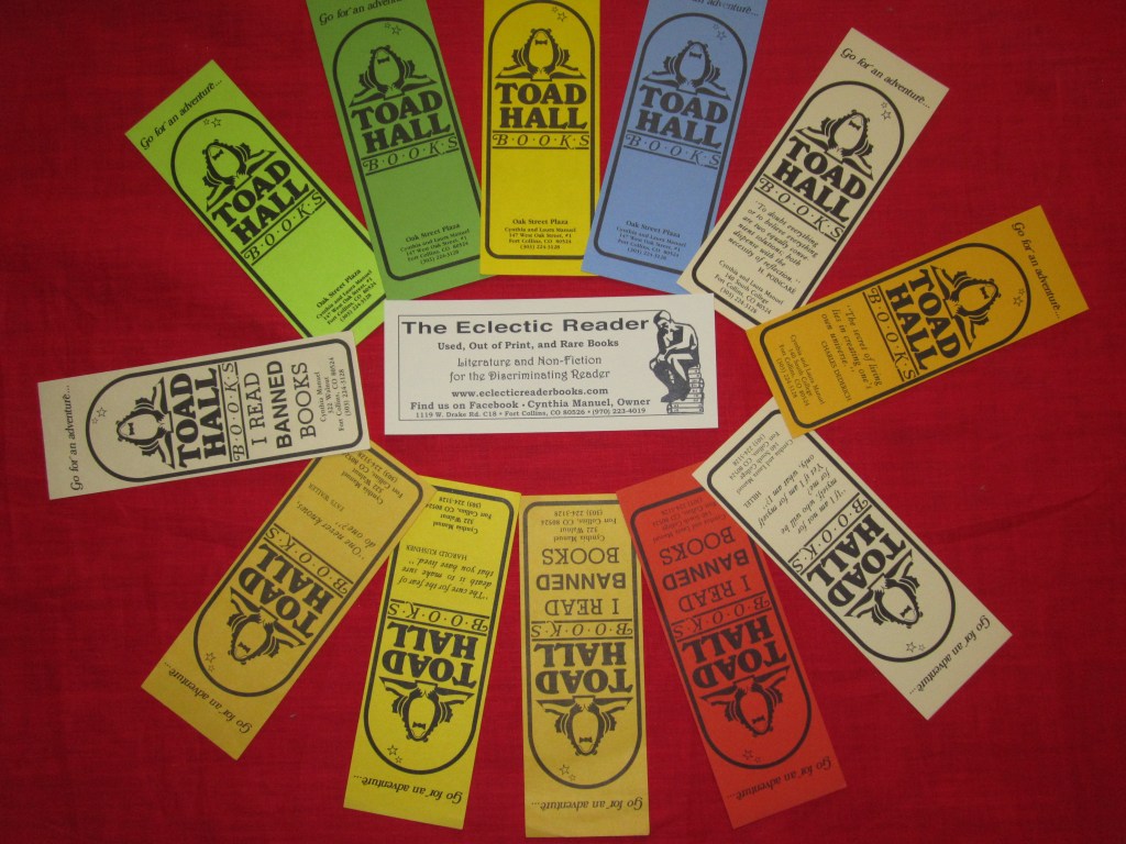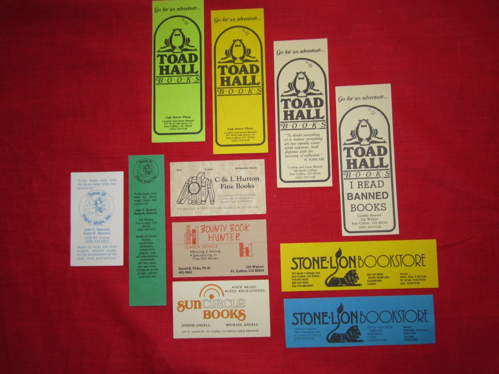 Just as I have moved my store, other bookstores have migrated to what they hoped were greener pastures…i.e. lower rent and/or better location. Happenstance (after one move within Fort Collins), and The Bounty Book Hunter, left Fort Collins for Boulder and Estes Park respectively. The Bounty Book Hunter became Fine Old Books and then was sold, and later closed. The House of Paper Ships moved from Greeley to Fort Collins before closing. Old Firehouse Books traces its history back to the Cheyenne and Greeley “Book Racks,” a franchise. Susie Wilmer and Dick Sommerfeld purchased the Fort Collins’ Book Rack in 2001 from the Hawks, who opened it in 1980 and operated it for 20 years. It was then moved to 1801 South College in 2002 and later on moved and expanded into Old Firehouse Books in 2009, occupying the historic Fort Collins firehouse, previously occupied by The House of Paper Ships bookstore. In Loveland, a Book Rack moved and expanded to become Anthology bookstore, changed owners, and eventually closed.