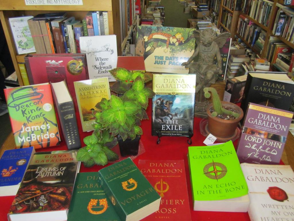 I missed a timely post, but you have not missed the wide selection of Outlander books available today at The Eclectic Reader. There are more on the shelves. I am a devoted Outlander fan, having started way back in 1993. They are my favorite escapist reading. Going deep into another world and historical time that is described with such detail and accuracy by author Diana Gabaldon is very helpful in escaping the realities of our own time. This series has it all, history, romance, intrigue, great characters, and yes, sex and violence. It has the most evil villain of all. I could do without the extreme violence at the end of book one, but Gabaldon does know how to write the best sex scenes. I am currently reading book 9, Go Tell the Bees. The mini-series is also worthwhile and a faithful adaptation.