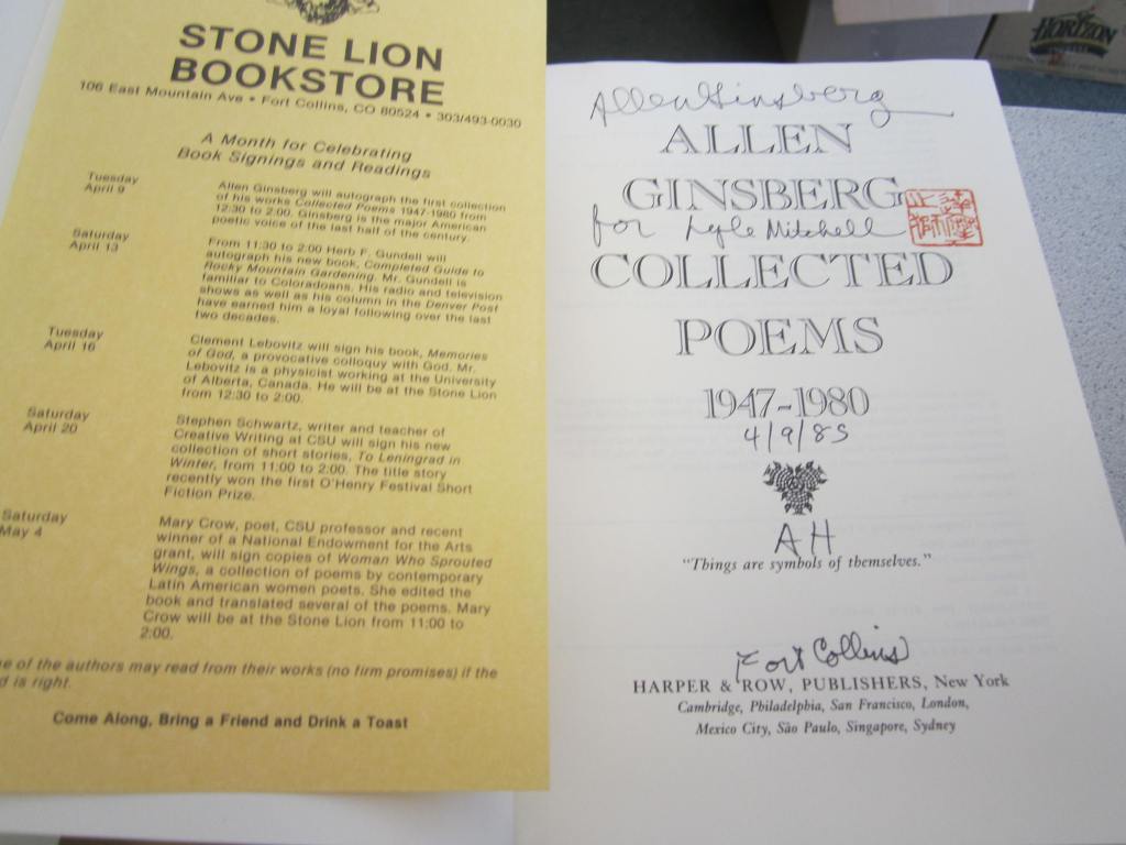 This inscribed copy of Allen Ginsberg’s Collected Poems was only in the store a few months. As you can see, it was signed locally at The Stone Lion Bookstore in 1985.