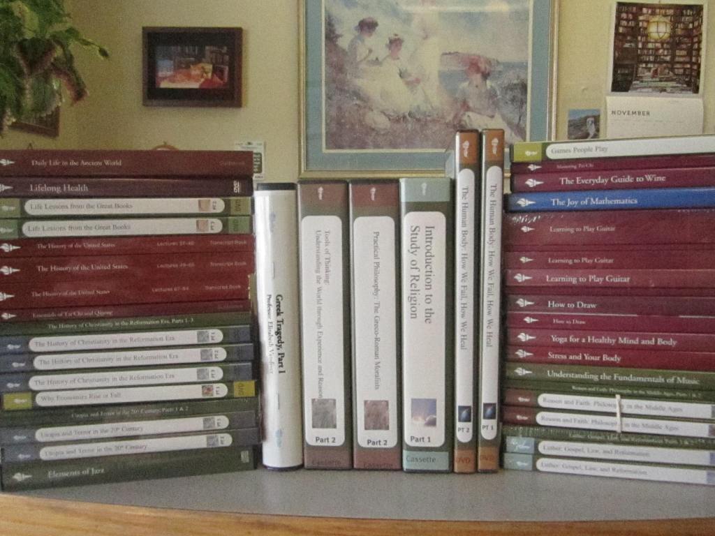 We have many of the Great Courses in stock, especially history and music. Most in DVD form, some CD. Prices range from $15 to $35 for sets. The holidays are coming up fast!