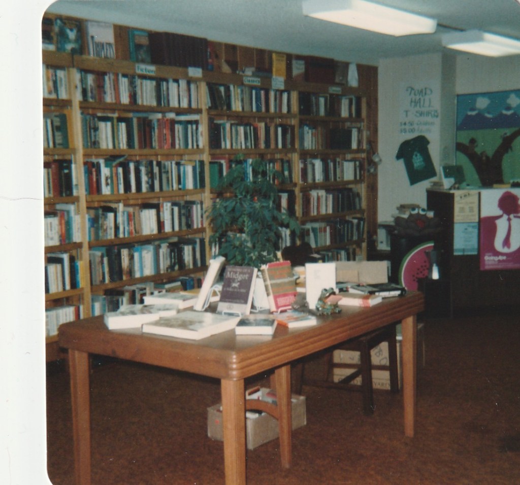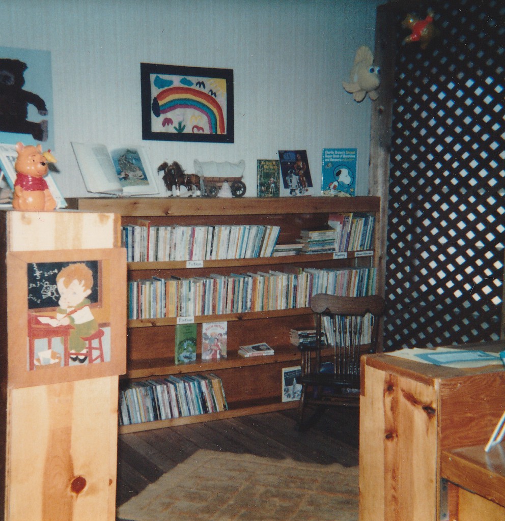 So my sister and I decided on a whim to open a bookstore. All summer and fall we bought books. We hired contractors to build quality bookshelves (which I still use). We did all the sanding and staining ourselves. Rented 147 West Oak Street Plaza for $350 and put it all together. Specializing in children’s books, we named the store Toad Hall Books. My sister sometimes worked in the store on her days off while I took care of my small homestead or spent time with my daughter.