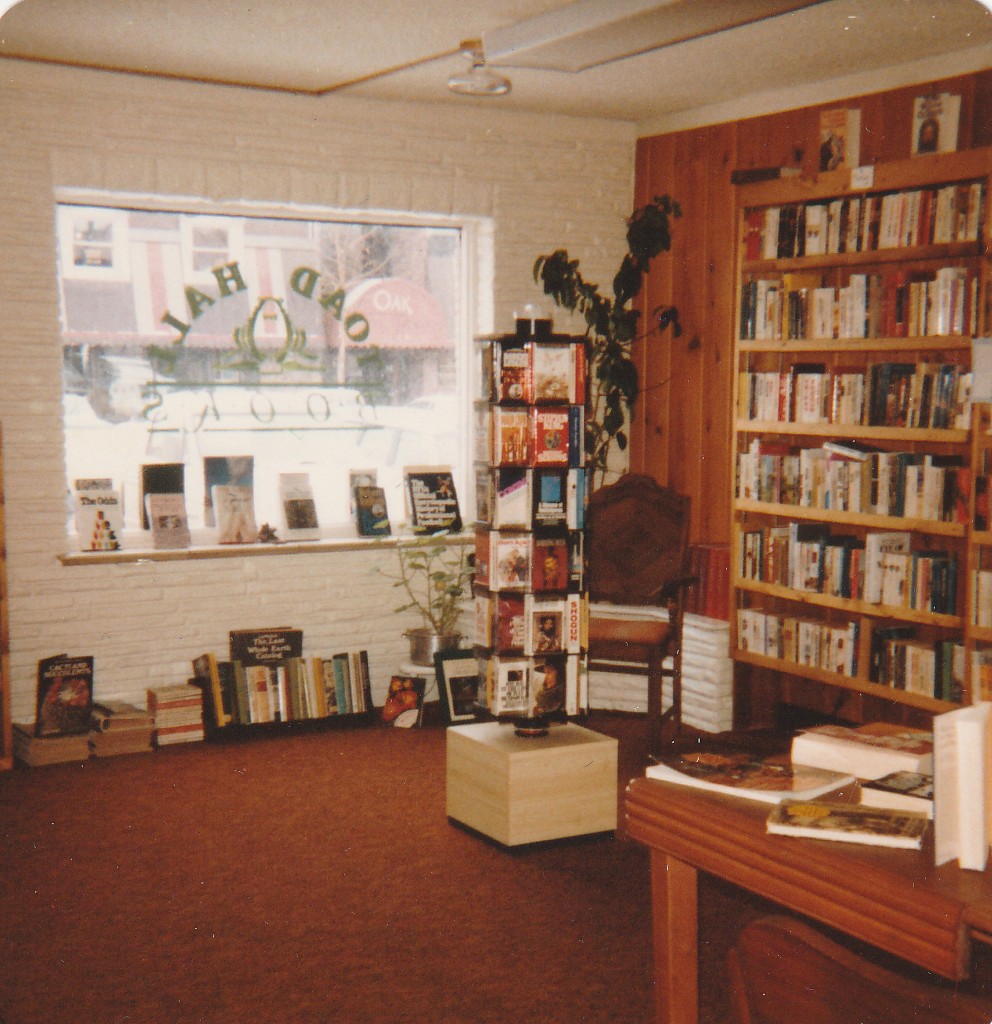 At this Oak Street location I sponsored lectures, poetry readings, open mike nights, a Trivial Pursuits party, wine and cheese tasting events, and displays of art by local artists. Nissa, the first of a long line of bookstore cats, moved in. She greeted all the customers. She also greeted them in the morning at the front window. Soon we had to put up a bar to keep her from knocking all the display books on the floor when she said hello to passersby.